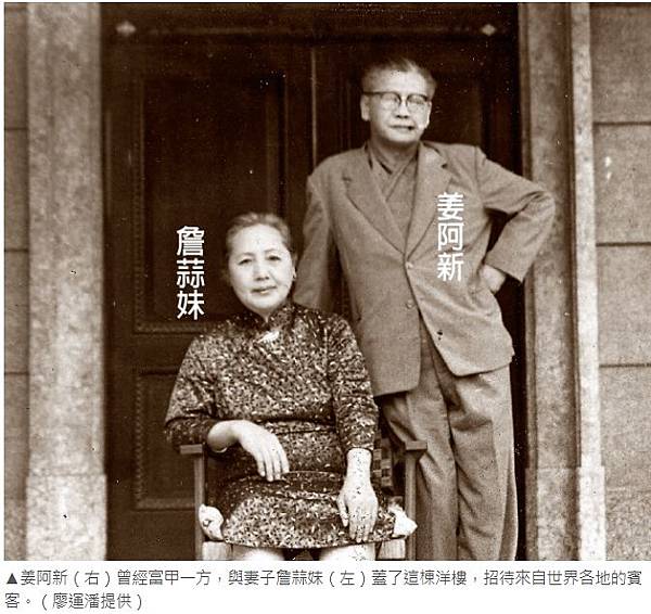 姜阿新在祖厝天水堂旁,建蓋一棟和洋混搭西式洋樓,當年來說,極顯雄偉。「祖父熱衷建築設計,他參考新竹新豐徐家巴洛克建築、去迪化街找靈感。」姜阿新三孫女、現為姜阿新教育基金會董事廖惠慶說。 徐榮鑑-新豐徐宅/徐家別墅/徐慶火(姜瑞鵬岳父)/徐淑嬌(姜瑞鵬之妻)/萃豐莊 @ 姜朝鳳宗族 :: 痞客邦 ::