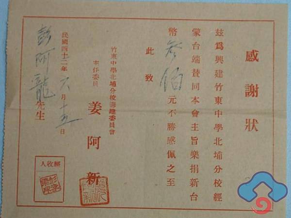 觀音鄉第一個台灣大學畢業生廖運潘老先生,為北埔姜阿新宗長女婿。