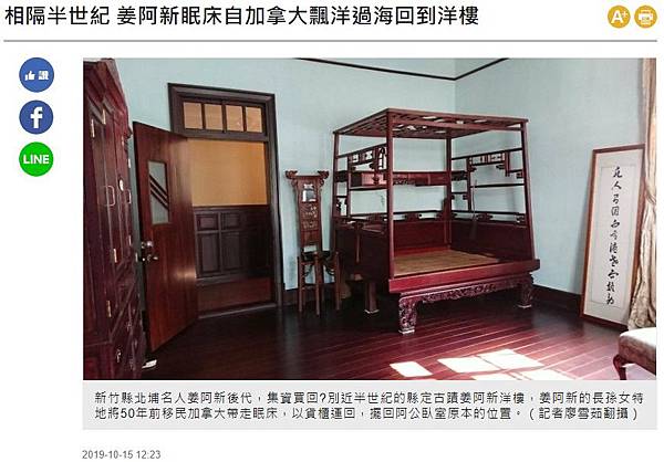 新竹縣縣定古蹟姜阿新洋樓,在姜阿新家破產後,民國54年被抵押償債給合作金庫,84年起由新光集團向合庫租用,並由吳東昇發起成立金廣福文教基金會管理維護﹔姜阿新舉家遷居台北,歷經數十年打拚,子孫都各有成就,但心中總期待「有一天要把大宅買回來」。姜阿新洋樓 易主半世紀子孫出資買回 | 環境資訊中心 https://bit.ly/3HJdKcL