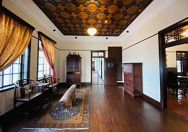 洋樓建於1946年,費時三年完工,既是宅第,也是招待海內外賓客場所,既是中西融合,又有日式的迴廊,半圓拱、凸窗等古典建築技法與裝飾紋樣來自歐洲傳統。