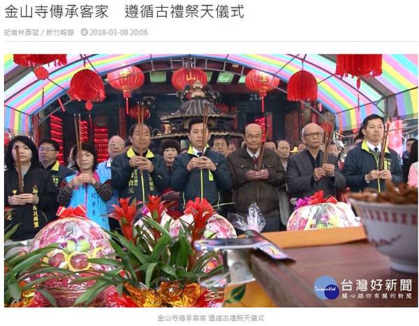 昨天是農曆正月20號,也就是全國客家日,新竹市的知名古蹟開台金山寺,在客家日的隔天舉辦隆重的祭天儀式,希望傳遞客家人敬天崇祖的精神。而儀式全程以客家話進行,也讓這項儀式更具獨特性。