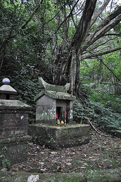 糯米橋附近的道路左側有石階路,通往上方樹林內的伯公廟。入口立有導覽圖文,介紹民間的土地公的信仰及廟宇的形式演變。 伯公,是客家人對土地公的尊敬暱稱。這座石砌伯公小廟座落於一棵老樹前面,歷史已有百年。簡易石板砌成的小廟,青苔浸染, 滿懷古味。我曾路過這裡多次,從不知馬路旁的樹林裡隱藏著這麼一座百年土地公廟。如今古廟終於得到重視,規劃成為一處歷史人文景點。