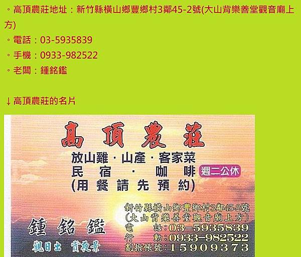 地址 新竹縣橫山鄉豐鄉村3鄰大山背31號
