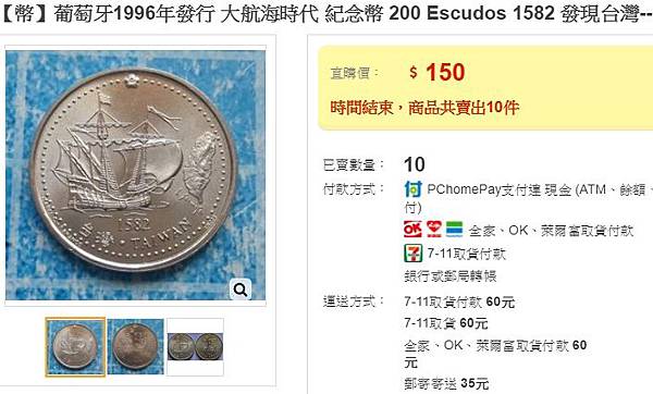【幣】葡萄牙1996年發行 大航海時代 紀念幣 200 Escudos 1582 發現台灣---請akmskimo下標 - 露天拍賣 - https://goo.gl/MBU12U