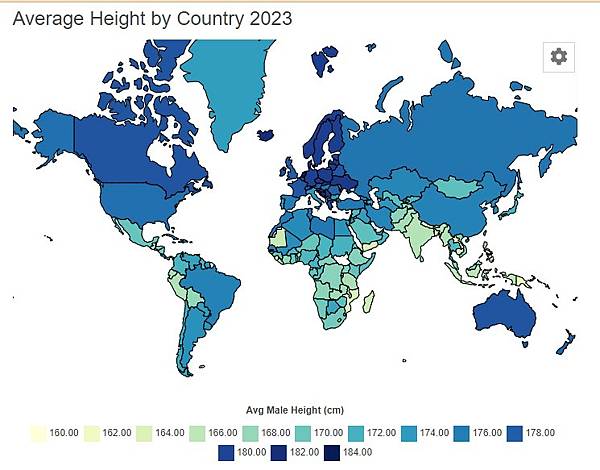 (以下表格資料為英國ncdrisc根據各國參與人員回報資料,許多國家非官方正式數據僅供參考,例如臺灣男性身高表示為172.6厘米-176.4厘米[6],表示樣本平均174.5厘米,樣本人數大約40人,而非官方正式數據,而中國男性175.5厘米是研究人員回報2014年國民體質監測公報官方人口加權數據) 人類身高 - 維基百科,自由的百科全書