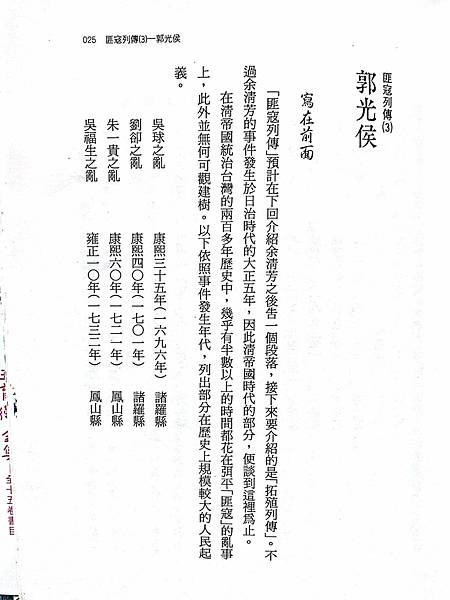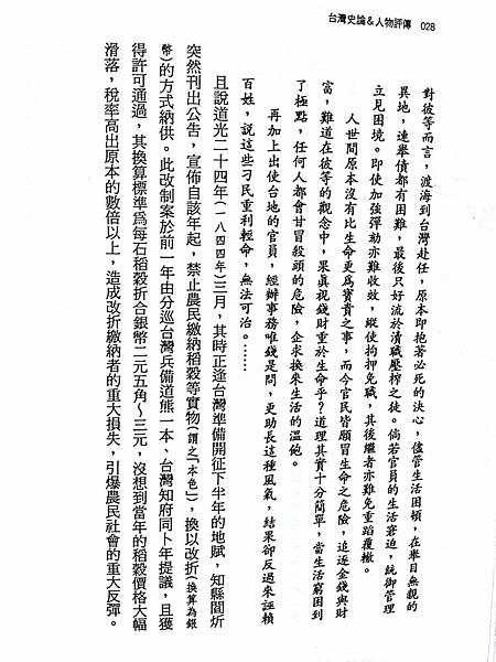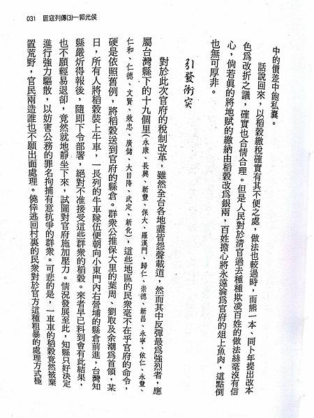 政府把地賦從本色(穀納制)改為改折(折銀納殼制)時,(貪官以譎詐來剝削本地人所以起來反抗的,就是1843年郭光侯起義事件。滿清污官為了私利,加在台灣人身上的剝削,引起台灣農民的反抗。滿清在台的田賦,內地以米,台灣以穀,內地可以折銀,台灣不得折銀,這是因為,台灣是產米之地,福建一帶所需的軍糧,要由盛產米的台灣來接濟。但是海上交通時有阻滯,以致積穀漸多,於是米價日賤。所以為了官員的私利+陳慶鋪深為憐憫,上疏代為伸冤,郭光侯雖力爭無反意,但因聚眾抗官,難辭其咎,被刑處流刑。事後台灣知縣閻炘與貪污的官員被一一換下,台灣的正供,依然堅持由穀改改為納銀,並規定每石折算六八銀二元,唯鳳山縣下折算二元二角。 @ 姜朝鳳宗族 :: 痞客邦 :: - https://goo.gl/QSjPTo
