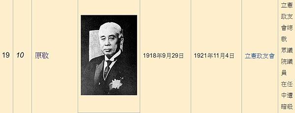 原敬(1856年3月15日-1921年11月4日),號一山,出生於岩手郡本宮村(即現在岩手縣盛岡市),日本已故政治家、第19任日本首相,歷任遞相、內相、內閣總理大臣。打破薩長藩閥政治,成功組織日本第一次的政黨內閣,但是在任內遇刺身亡。