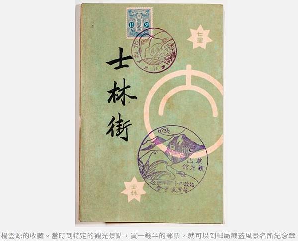 楊雲源的收藏。當時到特定的觀光景點,買一錢半的郵票,就可以到郵局戳蓋風景名所紀念章。