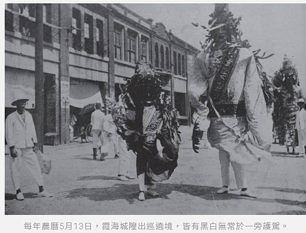 每年農曆5月13日,霞海城隍出巡遶境,皆有黑白無常於一旁護駕。