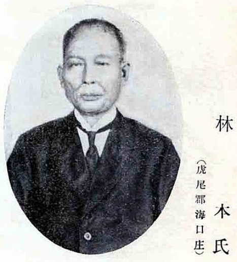 雲林縣西螺堡莿桐鄉人,原籍福建詔安。曾祖林穀於乾隆間渡臺,居於諸羅,墾闢荒埔,起田園於莿桐,旦暮耕於野,如是者二世。至其父良乃廢淞耕租納,栽植甘蔗,並經營糖真,以此而獲巨利,既雄於財,遂為地方名望之家。林本生於光緒三年(1877)九月二十七日,幼入私塾受漢學教育,頗為敏慧,迨乙未(1895)割臺,不復存科舉之望。而因家族名望,1898年(明治三十一年)被舉為保正;1902年十一月被擢用為莿桐巷區長,一年半後辭職,專心於事業之經營。嘗任地方稅委員,土地調查委員,大日本赤十字社(即紅十字會)正社員、大日本製糖會社農參事、西螺信用組合長、斗六郡莿桐庄協議會員(按1920年日人改設莿桐庄,屬臺南州斗六郡)、虎尾郡水利組合評議員、嘉南大圳組合議員等公私要職。1912年(大正元年)八月獲授佩紳章。1926年自臺灣拓殖會社購得東勢厝農場一千四百甲,開墾成功,財勢愈雄。1925年獲日政府頒授大禮紀念章。1931年去世,年五十五。(張子文)