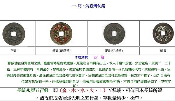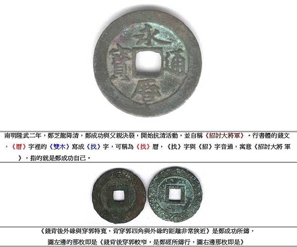 ,鄭成功當年抵台, 《永曆通寶》開始在台灣流通使用 之說。