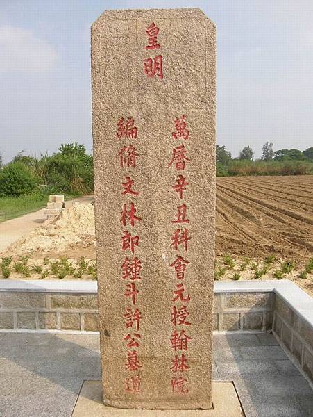 墓道碑文:「皇明 萬曆辛丑科會元授翰林院 編脩文林郎鍾斗許公墓道。」