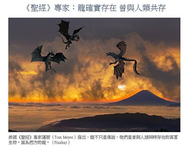 【大紀元2021年02月26日訊】(大紀元記者陳俊村報導)在東西方都有與龍相關的傳說,但牠們的形象有所不同。美國一名研究《聖經》的專家表示,龍不只是傳說,牠們是真實的生物,《聖經》和古羅馬歷史學家的記載都能證明,牠們曾經與人類同時存在。