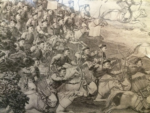 有興趣的可以去搜全部 16 張圖看——平定準部回部得勝圖 郎世寧等作——可以看見乾隆時期的清軍作戰方式,以及火槍和弓的比例,及怎麼用的。這可是乾隆自己典定的東西。