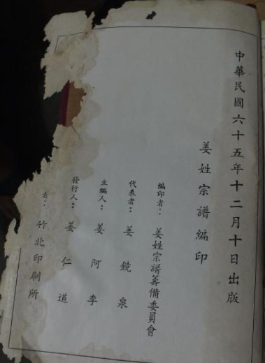 民國65年姜姓族譜