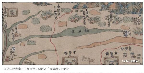 康熙年間輿圖中的鯽魚潭,湖畔有「大灣塘」的地名