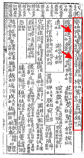 既然我們已經在《彙音妙悟》看到一整串同音字,那就不要只看「灣」,把剩下的也看完吧。結果突破性的發現就在「灣」下面的第三個字「淵」。一般來說「淵」讀作ian,但在《彙音妙悟》卻讀作oan,似乎有點怪怪的。接著再讀釋義,「土;水也;水出不流曰淵」。「土」的意思是「土音」,意思是這個字照理不讀這個音,但在泉州大家都這樣讀。所以將「淵」讀作oan的時候,意思就是指某種停滯不流的水,已經相當接近水池的意思了。