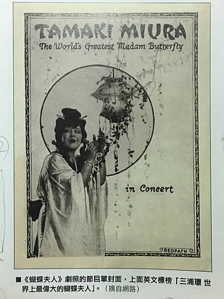 《蝴蝶夫人》劇照的節目單封面,英文標榜「三浦 環 世界最偉大的蝴蝶夫人」(摘自網路)(圖/陳義雄翻攝提供)