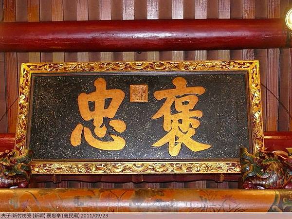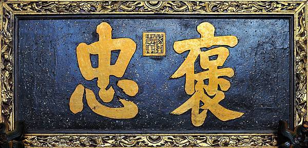 褒忠亭之名,乃出自於乾隆皇帝「褒忠」二字,此二字乃因客家義民因公殉職,乾隆皇帝御賜。此扁是依據乾隆皇帝御筆謄描而製,並有「乾隆御筆」之印,意義非凡。