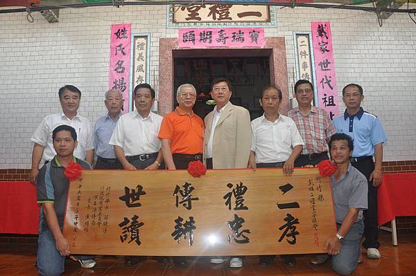 「二禮傳世 孝忠耕讀」,這是位於新竹縣橫山鄉沙坑村大平地的戴家二禮堂,在水保局完成周邊環境工程後,邱縣長和水土保持局長黃明耀共同贈匾所提,而二禮堂歷史文化的價值加上農村再生的努力,已重新喚醒了農村居民對在地的認同感與榮譽心,也為新竹縣在沙坑地區更添一處旅遊亮點。