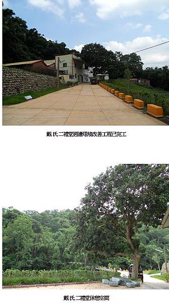 邱縣長則感謝戴姓宗族當年無償提供土地,讓地方鄉親都能一同分享農村再造成果,目前水保局第一期整治工作已完成,包括邊坡環境、入口意象,第二期改善工程也將在七月份展開,也重新喚醒了農村居民對在地的認同感,共同尋回許多農村被遺忘的回憶、創造更多感人的奇蹟與故事。