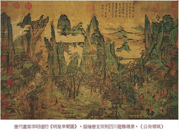 唐代畫家李昭道的《明皇幸蜀圖》,描繪唐玄宗到四川避難場景。(公有領域)