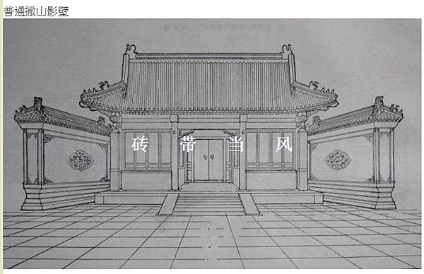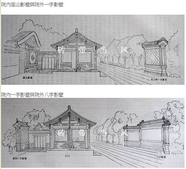 “影壁的名稱根據位置和平面形式而定,有坐山影壁、一字影壁、八字影壁和撇山影壁之分。