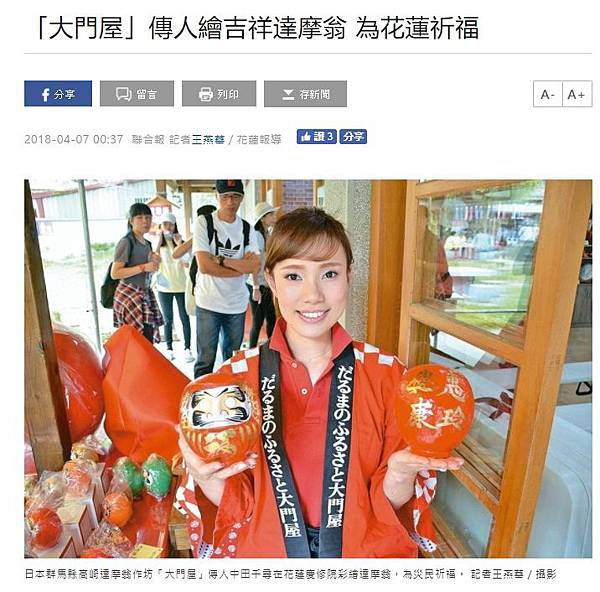 分享花蓮震後來台祈福 日本女匠師駐點慶修院彩繪達摩翁到Facebook 分享花蓮震後來台祈福 日本女匠師駐點慶修院彩繪達摩翁到Line 分享花蓮震後來台祈福 日本女匠師駐點慶修院彩繪達摩翁到Google+