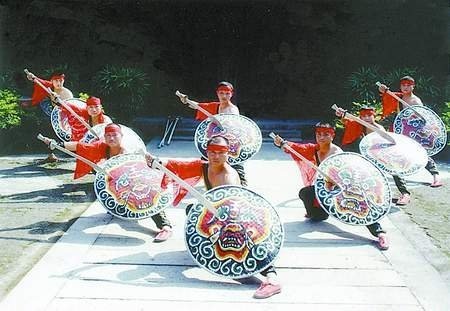 不過,藤牌兵的花架子經過民間傳承,成了一種類似於「秧歌」的雜耍兒,在福建一帶,逢年過節都有表演,很有看頭。