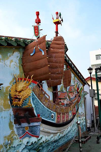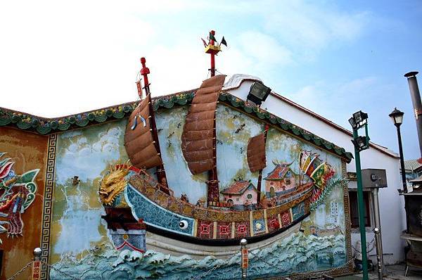 明永曆37年(1683)施琅滅明鄭後,阮駿之妻不滿施琅之作為,將原本坐北朝南的宅邸改向,朝向兌位,即西方(今之天后宮的方向),意圖以風水格局剋制施琅,施琅得知訊息後,遂於阮駿之妻宅邸前加蓋阻隔煞氣之照牆,此即今之萬福庵照牆之由來.