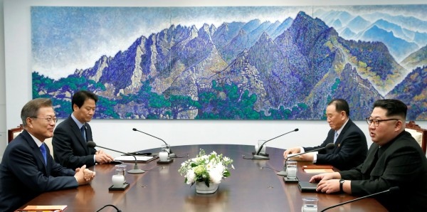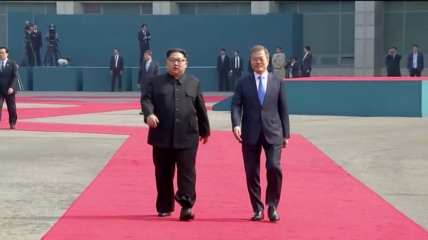 文在寅與金正恩於今(27)日上午,分別於韓國時間7點10分與5點42分(台灣時間8點10分、6點42分),離開各自的首都平壤與首爾,隨後文在寅於板門店與北韓交界處的藍色小屋外,迎接徒步進入南韓國土的金正恩,2人先是握手言談,接著金正恩牽著文在寅的手踏入北韓境內,讓全世界見證歷史性的畫面。