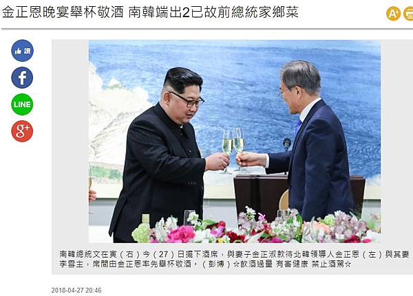 分享金正恩晚宴舉杯敬酒 南韓端出2已故前總統家鄉菜到Facebook 分享金正恩晚宴舉杯敬酒 南韓端出2已故前總統家鄉菜到Line 分享金正恩晚宴舉杯敬酒 南韓端出2已故前總統家鄉菜到Google+