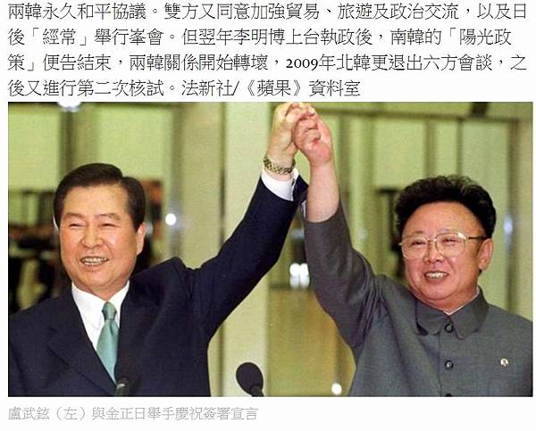 南韓與北韓所簽署的「板門店宣言」,除了提到將在今年宣布韓戰結束,北韓與南韓間還會展開經貿往來,並由北韓帶頭實施相關政策,要實現朝鮮半島零核武的理想,且為彼此對話拓展更多交流契機,還會舉辦兩韓與美或兩韓與美、中的政治協商。兩韓簽署板門店宣言 川普大讚:美國人民同感驕傲 - 國際 - 自由時報電子報 - https://goo.gl/7yxRYm