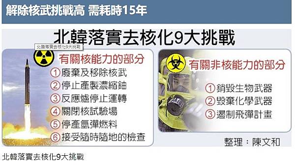 雙方對無核化定義存在巨大分歧。對美國來說,北韓須達成「完全、可驗證、不可逆的無核化」。對金正恩而言,則是暫停核試爆和飛彈試射,以換取經濟好處。金正恩從未表明放棄他稱之為「寶劍」的核武軍備 解除核武挑戰高 需耗時15年 - 中時電子報 - https://goo.gl/CYVj51