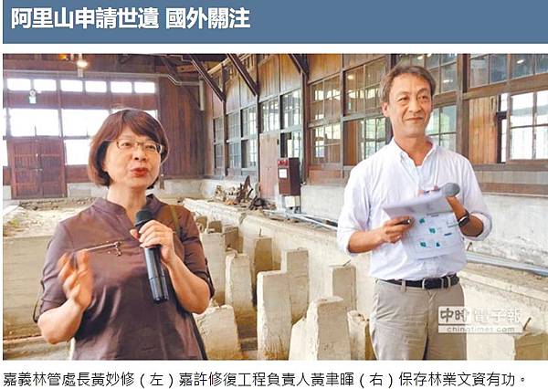 阿里山林業具指標性的文化遺產「嘉義製材所」,完成修復、調研,將分期分區活化,嘉義林管處昨日宣布分階段開放預約導覽,而林管處推動阿里山林業文化景觀申請聯合國世界遺產,獲東方文化遺址保護聯盟肯定,允諾協助與國際文化交流、接軌。