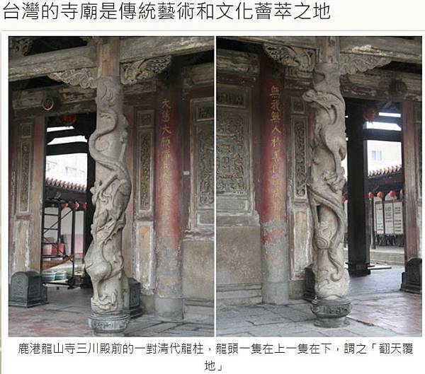 內文照片引用自梁震明老師yt影片:台灣十大龍柱推薦【台灣廟宇文化之旅 】清朝龍柱石雕之美