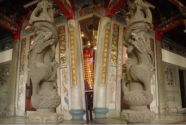 觀音殿內乾隆40年(公元1775年)的龍柱,風格古樸雄渾,簡單線條中龍身更顯英姿,為臺灣最早期龍柱代表之一