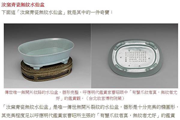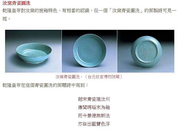 說明乾隆皇帝對汝窯不但十分鍾愛,並且也有相當的認識。