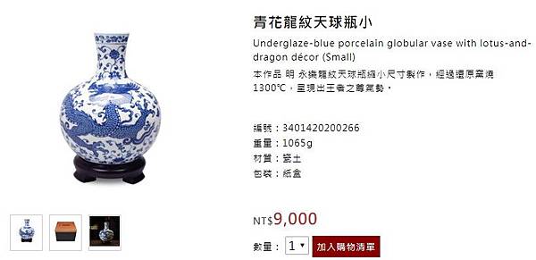 故宮精品網路商城 - 青花龍紋天球瓶小