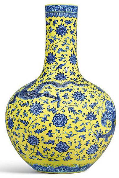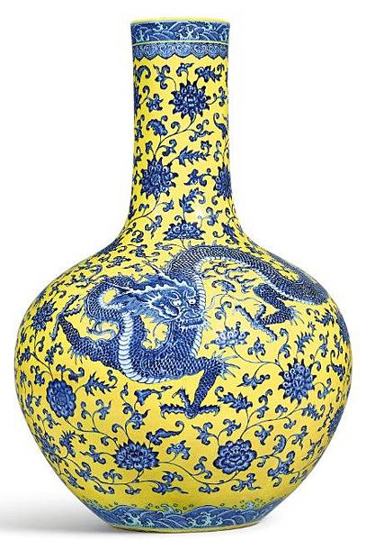 清乾隆 黃地青花穿花龍紋天球瓶 《大清乾隆年製》款 https://tinyurl.com/y4wmlszs
