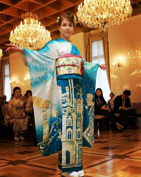 已曝光的和服相當精緻,呈現了代表各國文化的象徵,例如加拿大則是運用楓紅,既代表著加拿大的形象,類似暈染的紅很有日本秋天的意象;文藝復興的重鎮義大利,則畫滿了代表當時風格的建築物;美國則畫上了老鷹和阿波羅計劃的太空人;英國的和服則展示了國旗,並加上大文豪莎士比亞的作品場景、童話及電影《007》的元素。