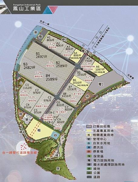 鳳山工業區自106年10月動工以來,已進入實質的開發階段,目前園區內正進行整地排水工程,預計109年底完工,工業區規劃面積約18.64公頃,可售面積約為10公頃,以15米園道作為貫穿園區的交通中軸線,另輔有12米園道,以生產事業用地及相關產業用地二大核心,發展園區使用配置及景觀植栽規劃,並根據各區主題特色種植,以綠化造林的方式減少二氧化碳,提供園區上班、生活、或洽公時,擁有更人性、自然、舒適的優質環境。