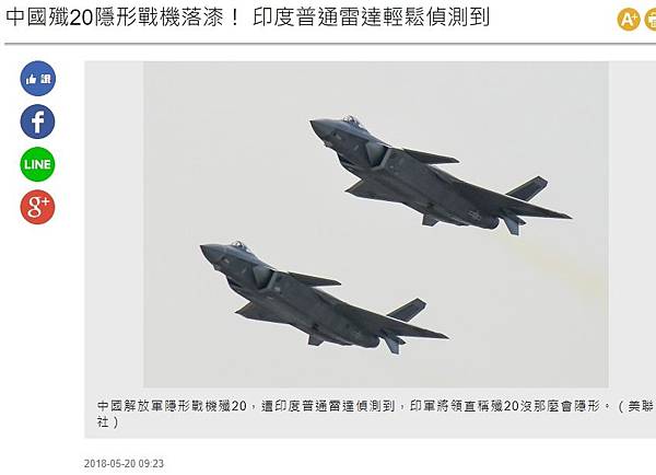中國殲20隱形戰機落漆! 印度普通雷達輕鬆偵測到 - 國際 - 自由時報電子報 - https://goo.gl/eeJdaj