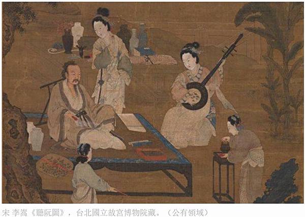宋 李嵩《聽阮圖》,台北國立故宮博物院藏。(公有領域)