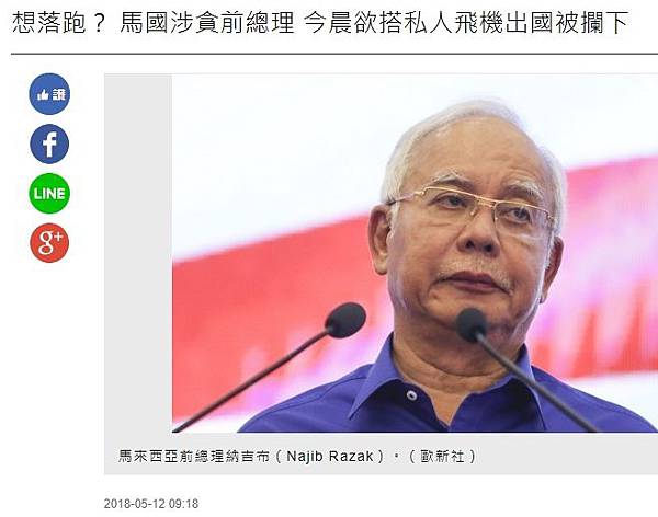 想落跑? 馬國涉貪前總理 今晨欲搭私人飛機出國被攔下 - 國際 - 自由時報電子報 - https://goo.gl/yZWZ3Q