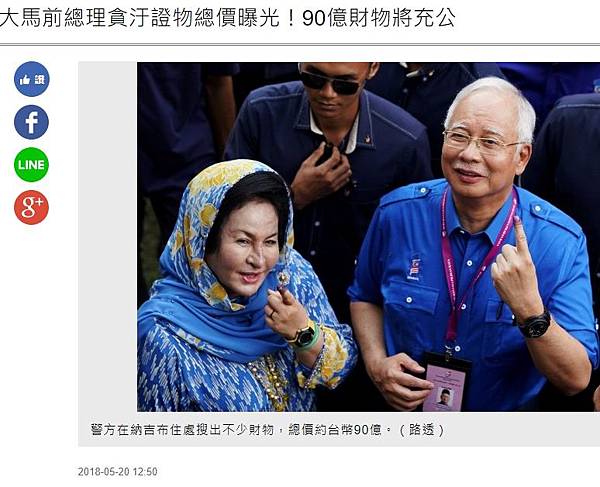 分享大馬前總理貪汙證物總價曝光!90億財物將充公到Facebook 分享大馬前總理貪汙證物總價曝光!90億財物將充公到Line 分享大馬前總理貪汙證物總價曝光!90億財物將充公到Google+