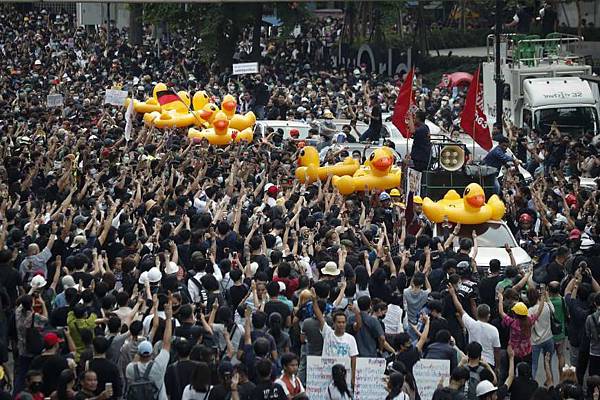 泰國從7月以來掀起一波學運浪潮,由「自由人民」(Free People)、「法政與遊行聯合陣線」(United Front of Thammasat and Demonstration)及多個民主運動團體,共同要求總理帕拉育下台,呼籲修憲及改革王室。17日晚間又再度爆發嚴重衝突,不過抗議現場居然出現大量的大型「黃色小鴨」夾在警察與民眾之間,十分突兀,也意外成為這次抗議的焦點之一。