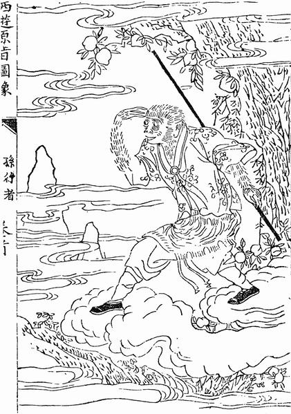 《西遊記》中的插圖-孫悟空,其手持的即是金箍棒。(公有領域)