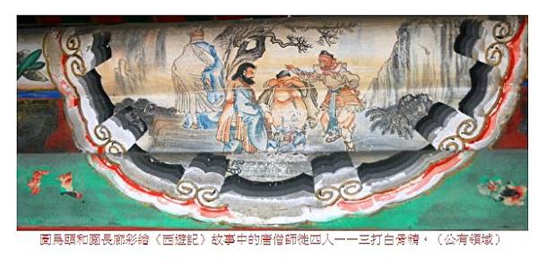 圖爲頤和園長廊彩繪《西遊記》故事中的唐僧師徒四人——三打白骨精。(公有領域)