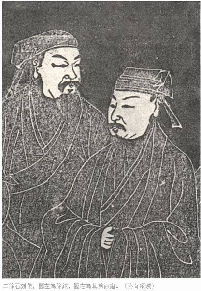 二徐石刻像,圖左為徐鉉,圖右為其弟徐鍇。(公有領域)
